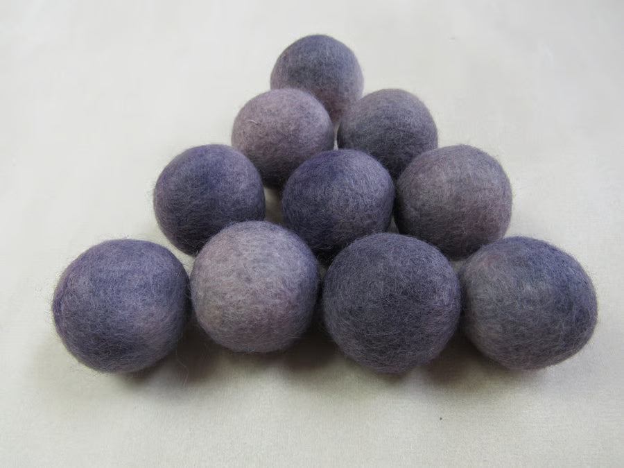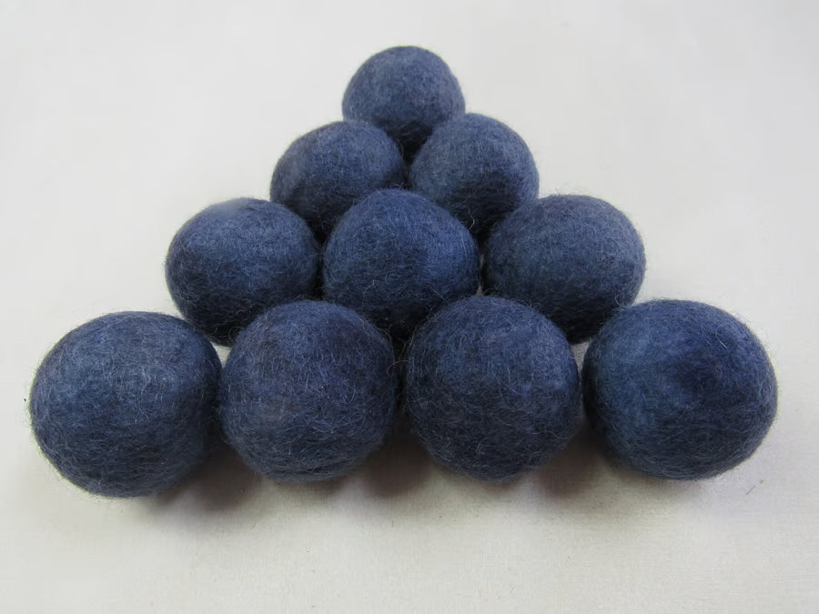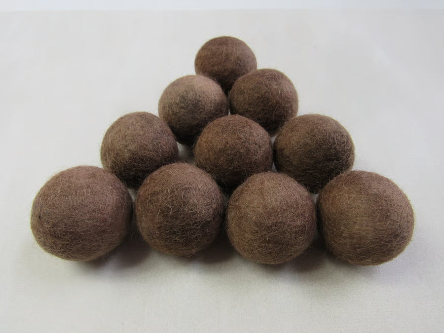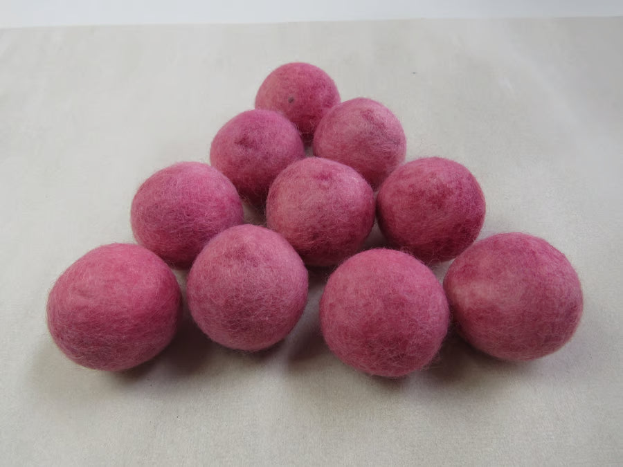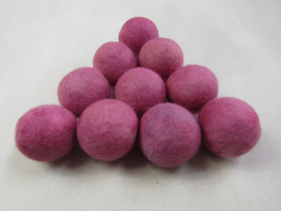 10 large 3cm felt balls, kettle dyed with assorted natural dyes.