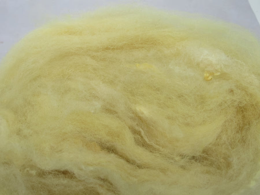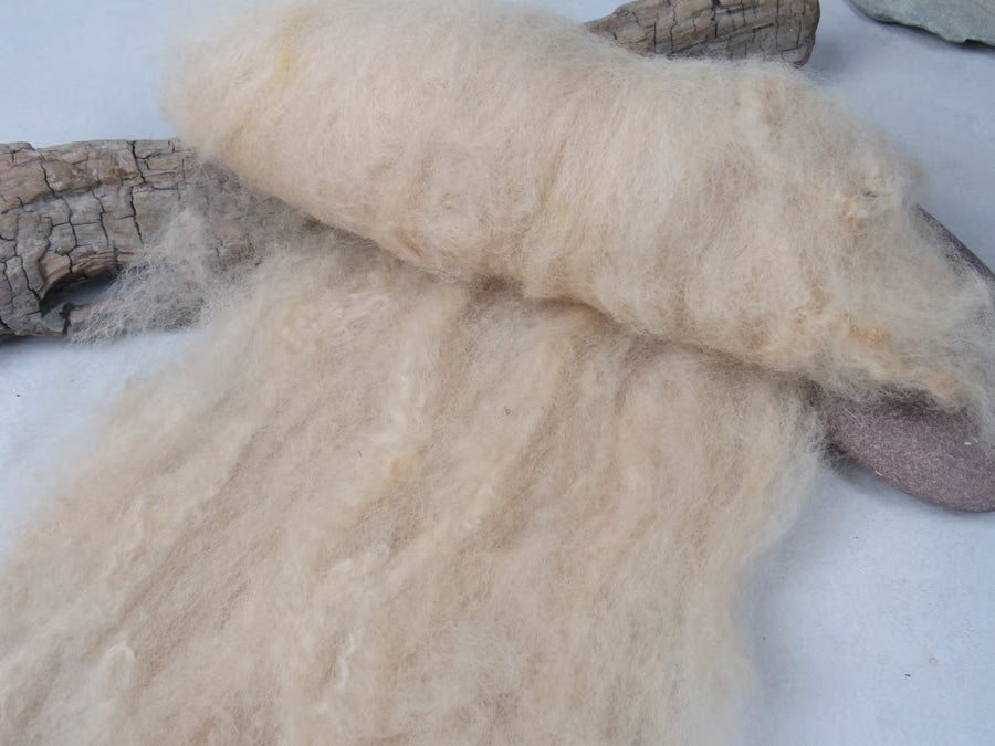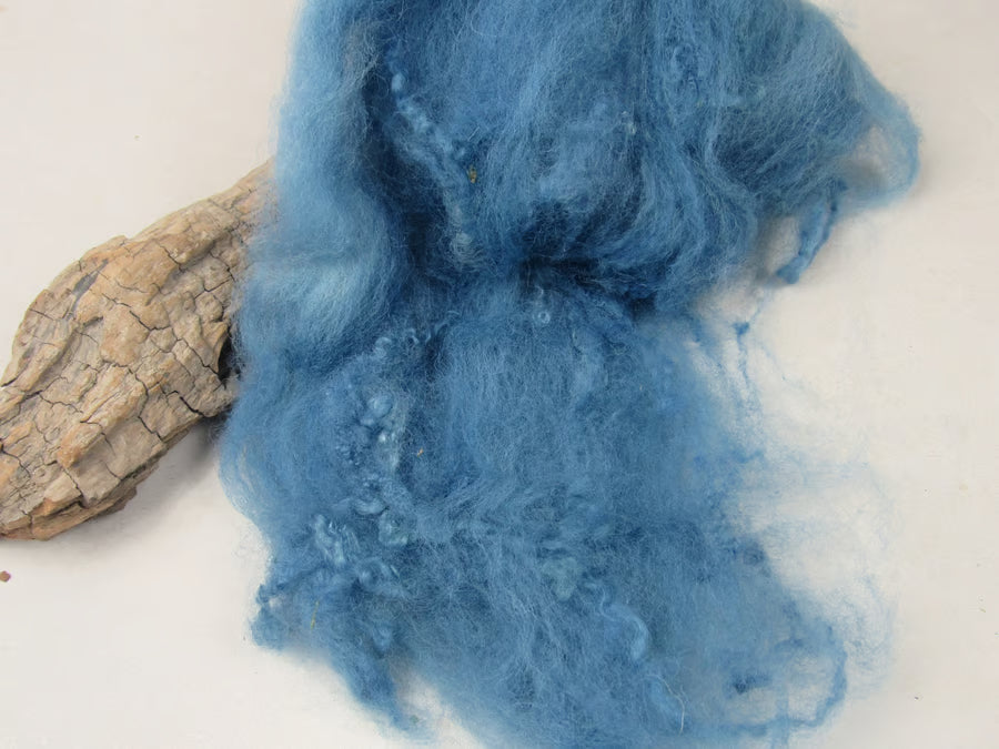 10g of blended Blue-Faced Leicester (for texture and crimp) with Shetland (for smoothness) wool naturally dyed and ready for felting, spinning or weaving.