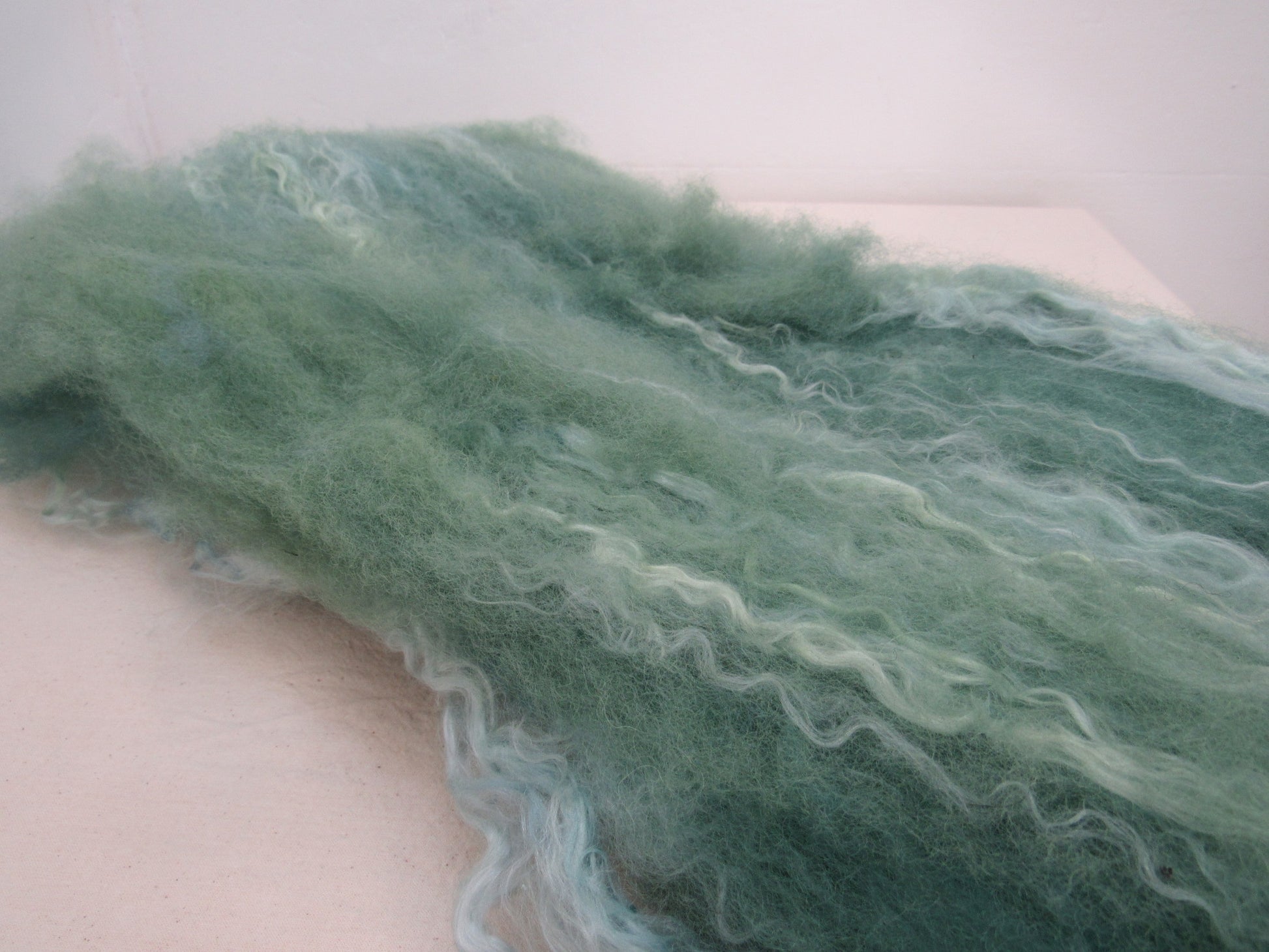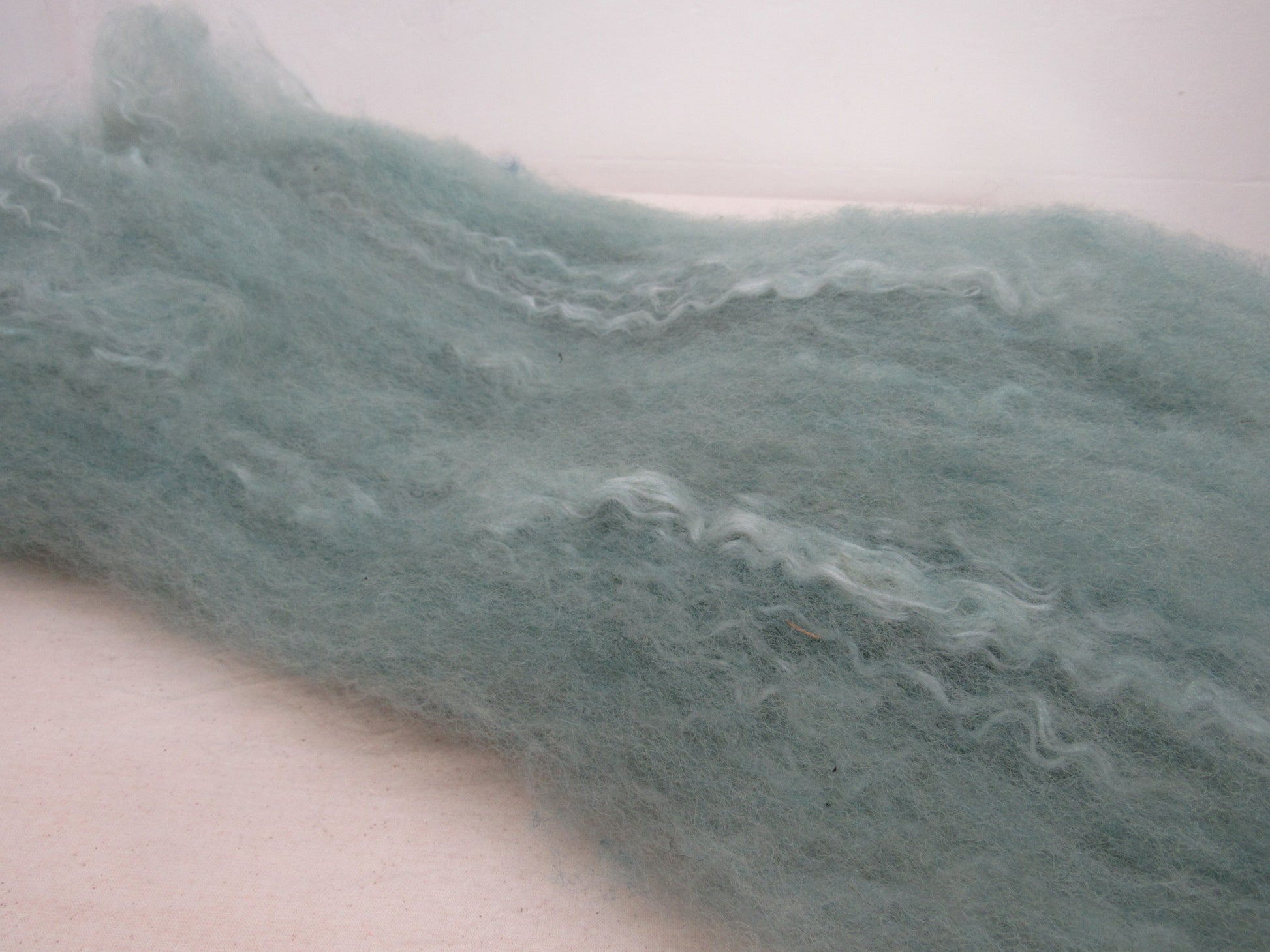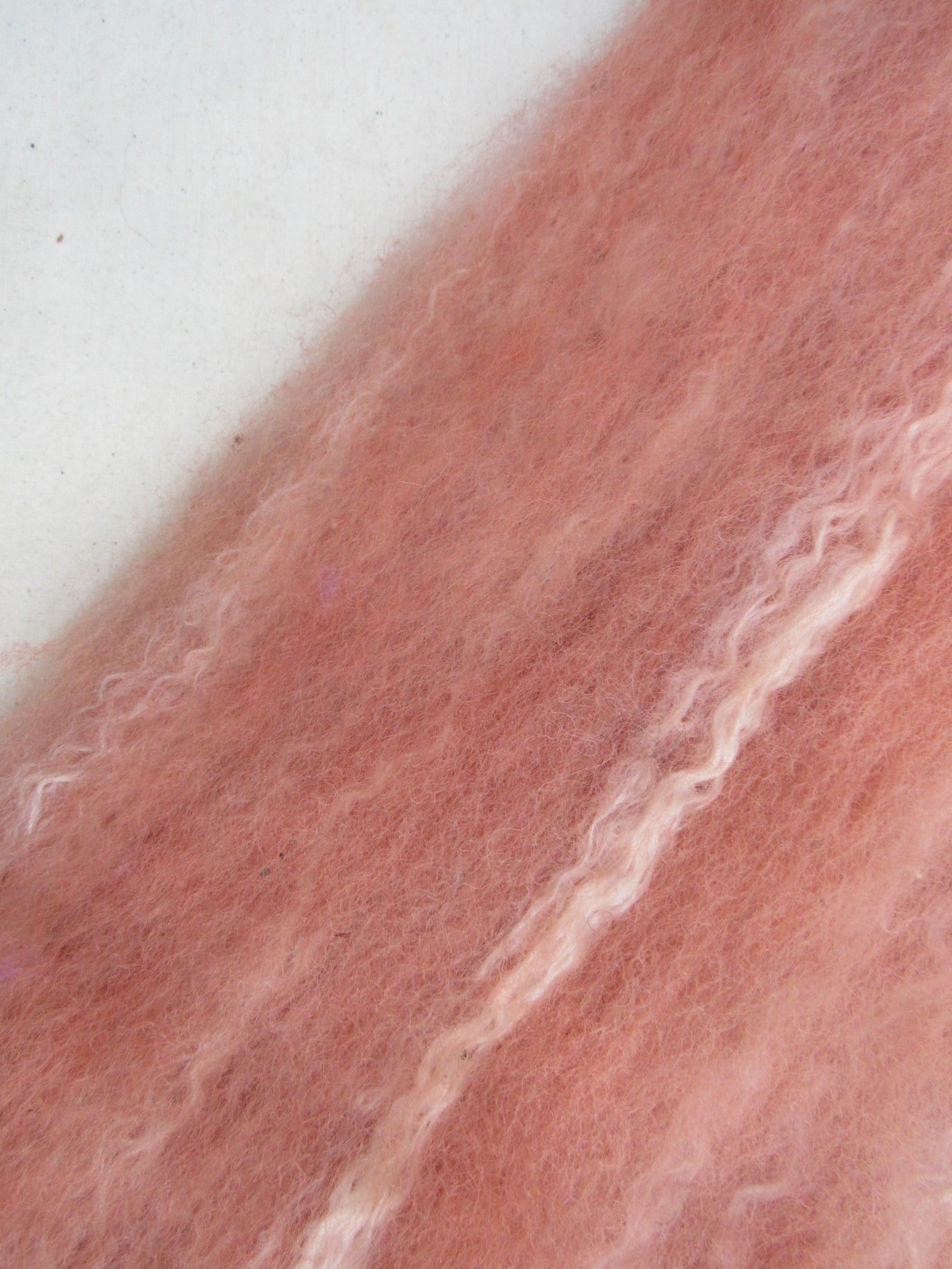 Carded from 80% British BFL fleeces and 20% tussah silk, these 50g batts are ideal for spinning or felting.