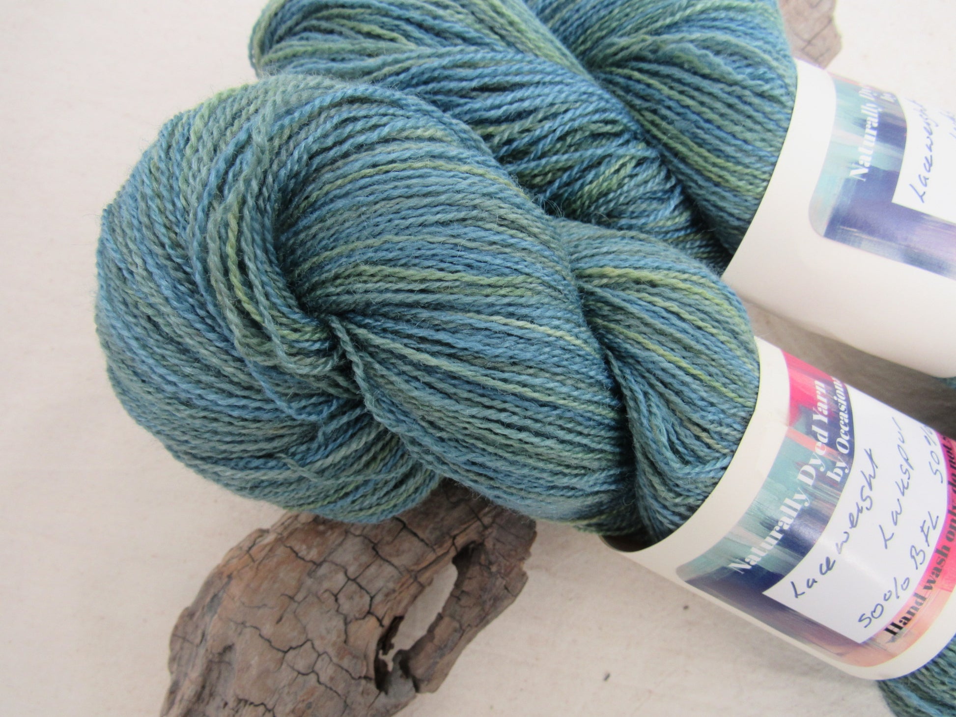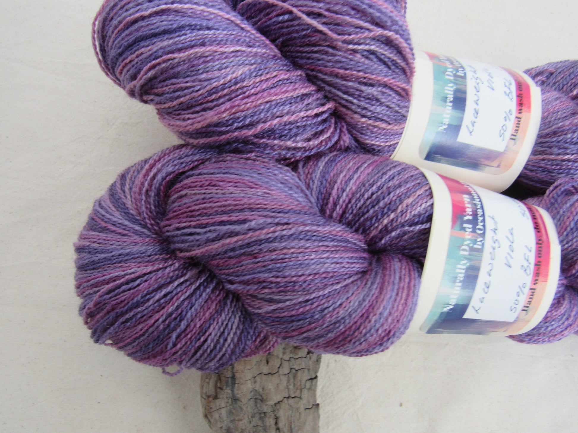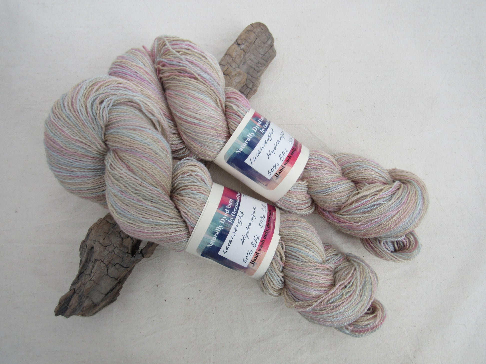 100g soft 50% British Blue Faced Leicester / 50% Silk laceweight yarn dyed with a range of natural plant dyes.