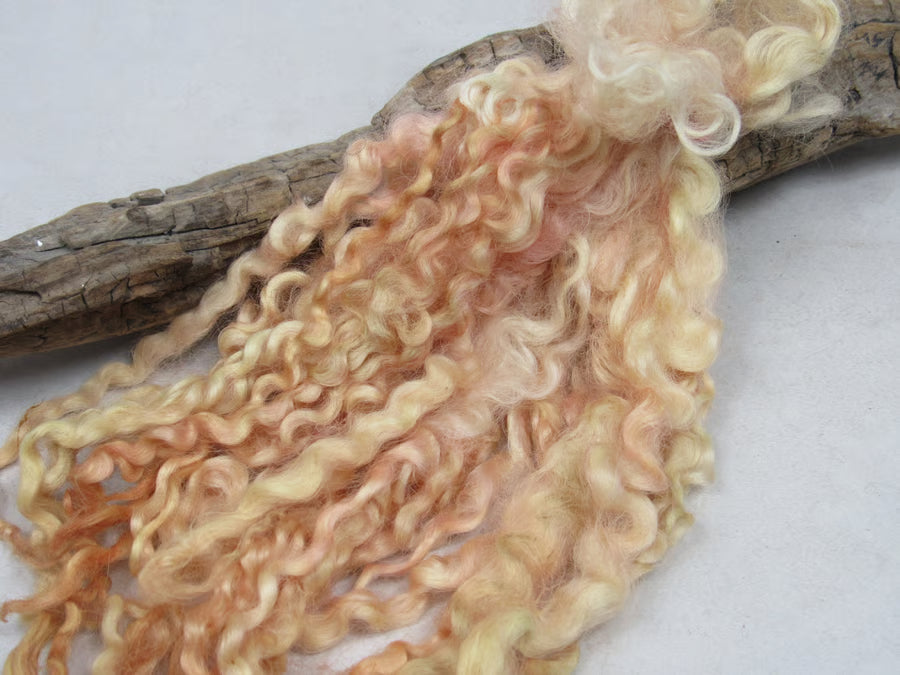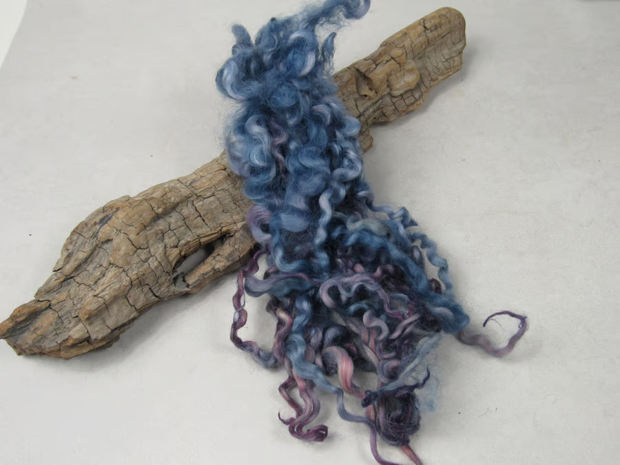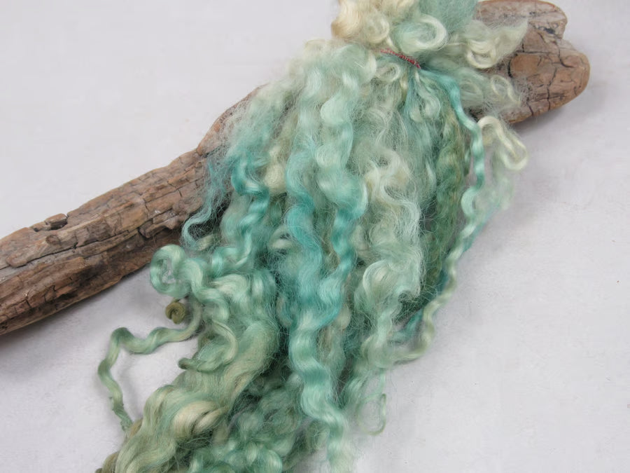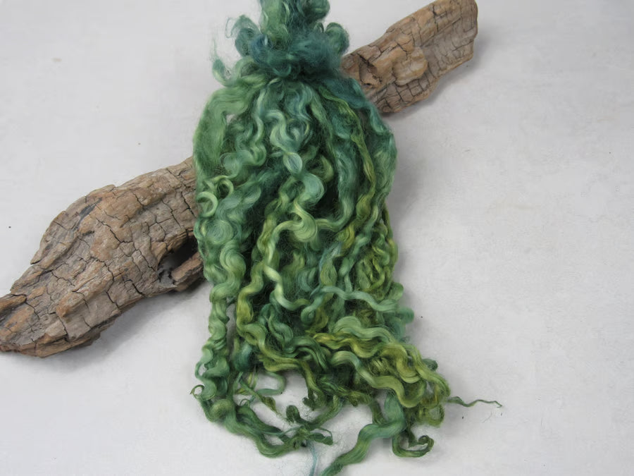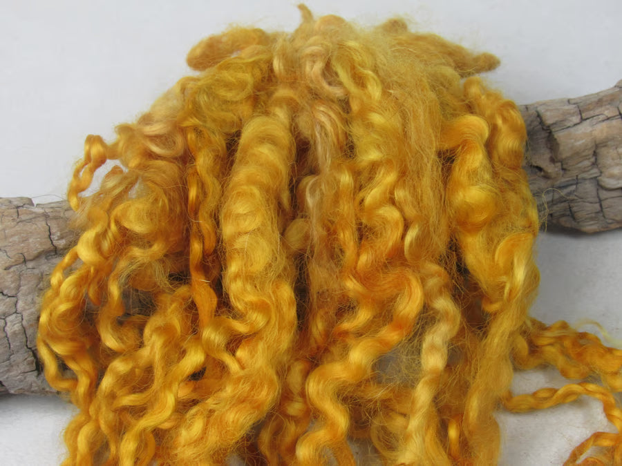 20g of beautifully curly Masham locks naturally dyed and ready for felting, spinning or weaving.