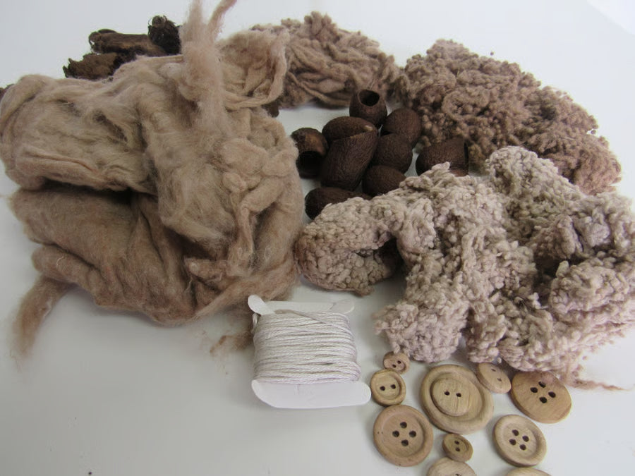 10g wool slubs, 10g wool neps, 10g silk carriers, 10g cotton neps, 10g unspun silk fluff