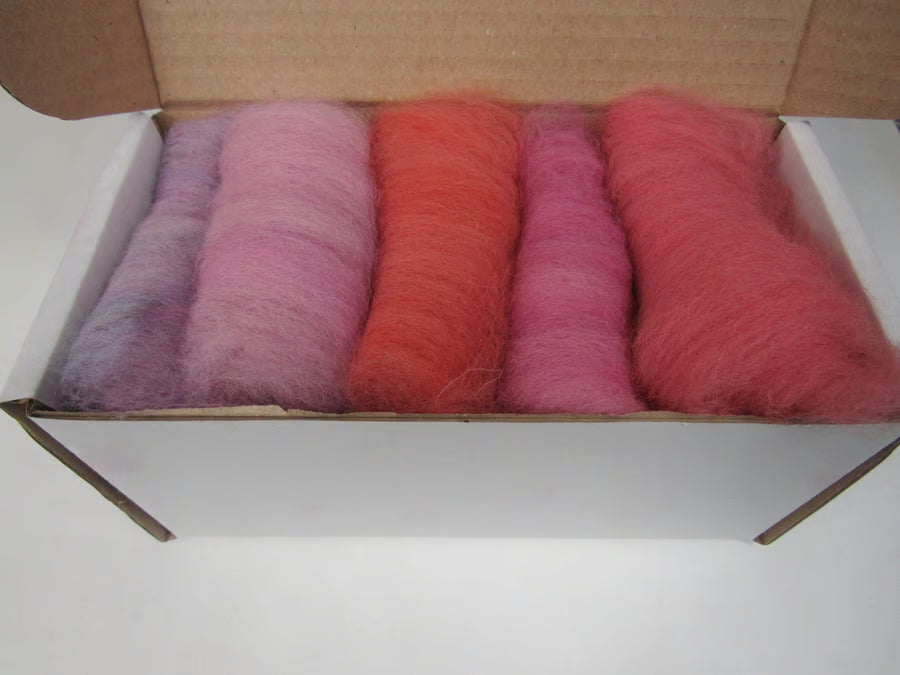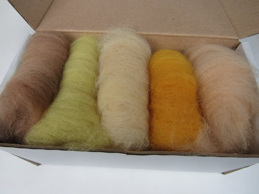 5 x 10g mini batts of naturally dyed Shetland wool for felting or spinning.