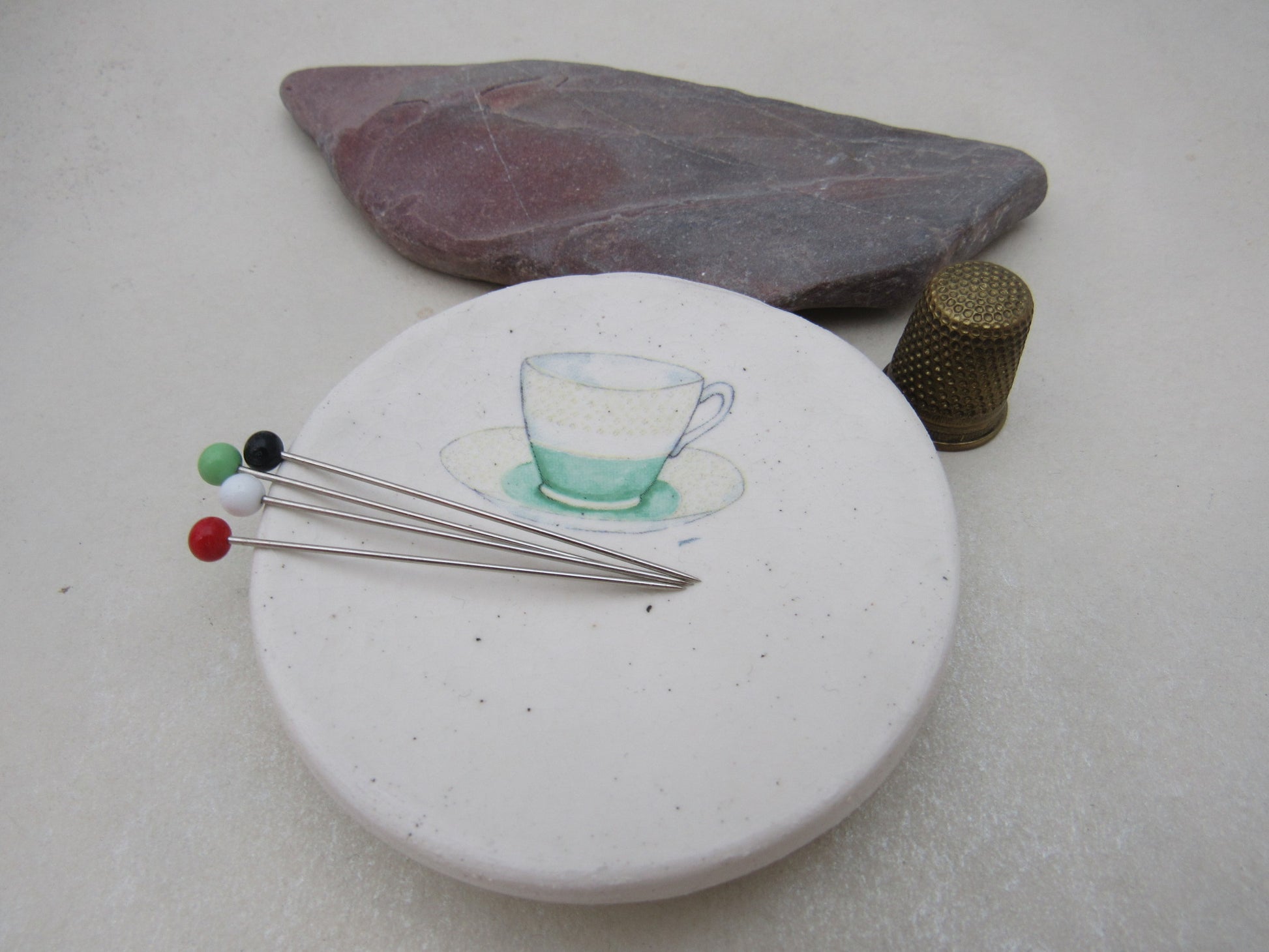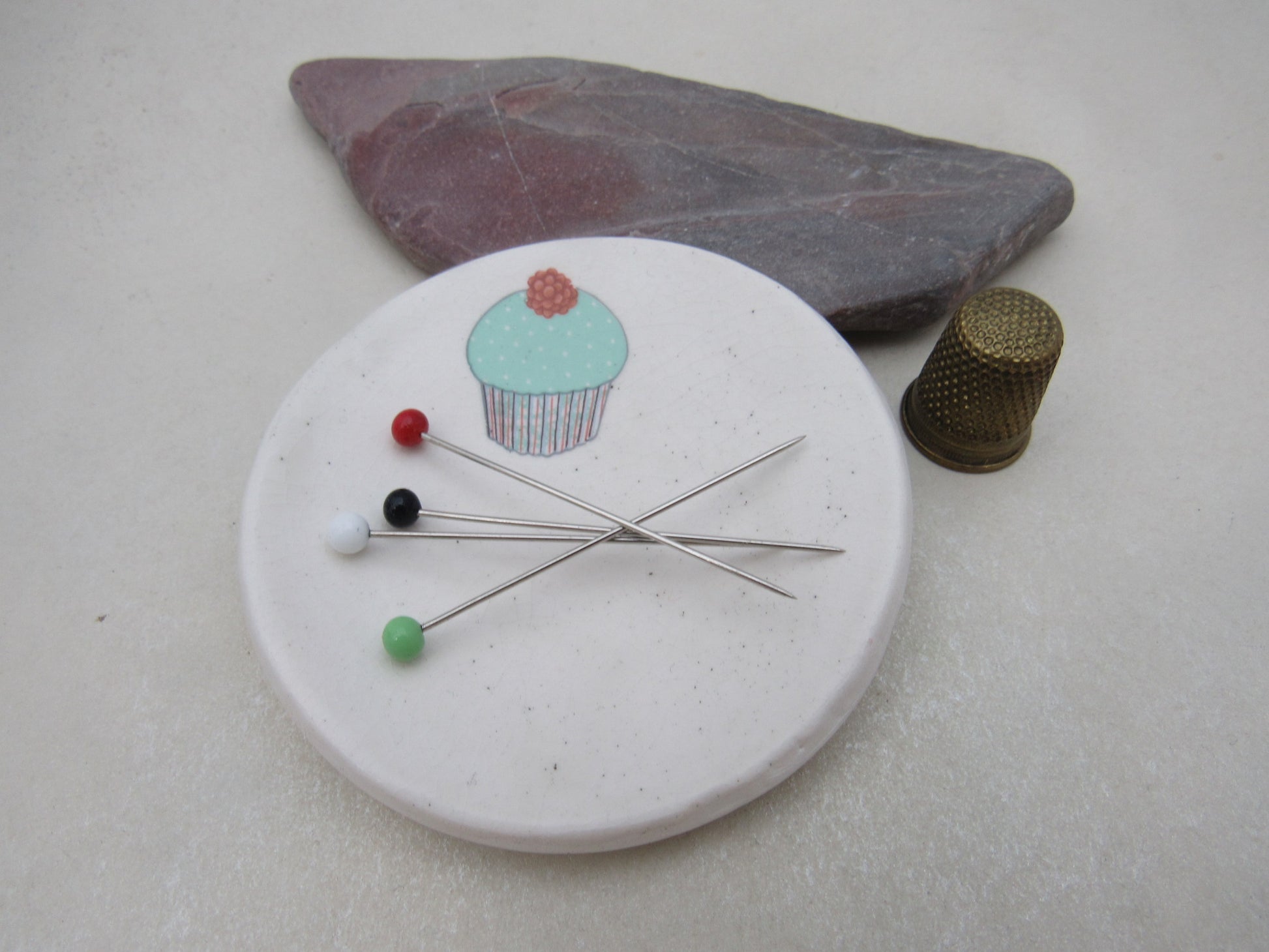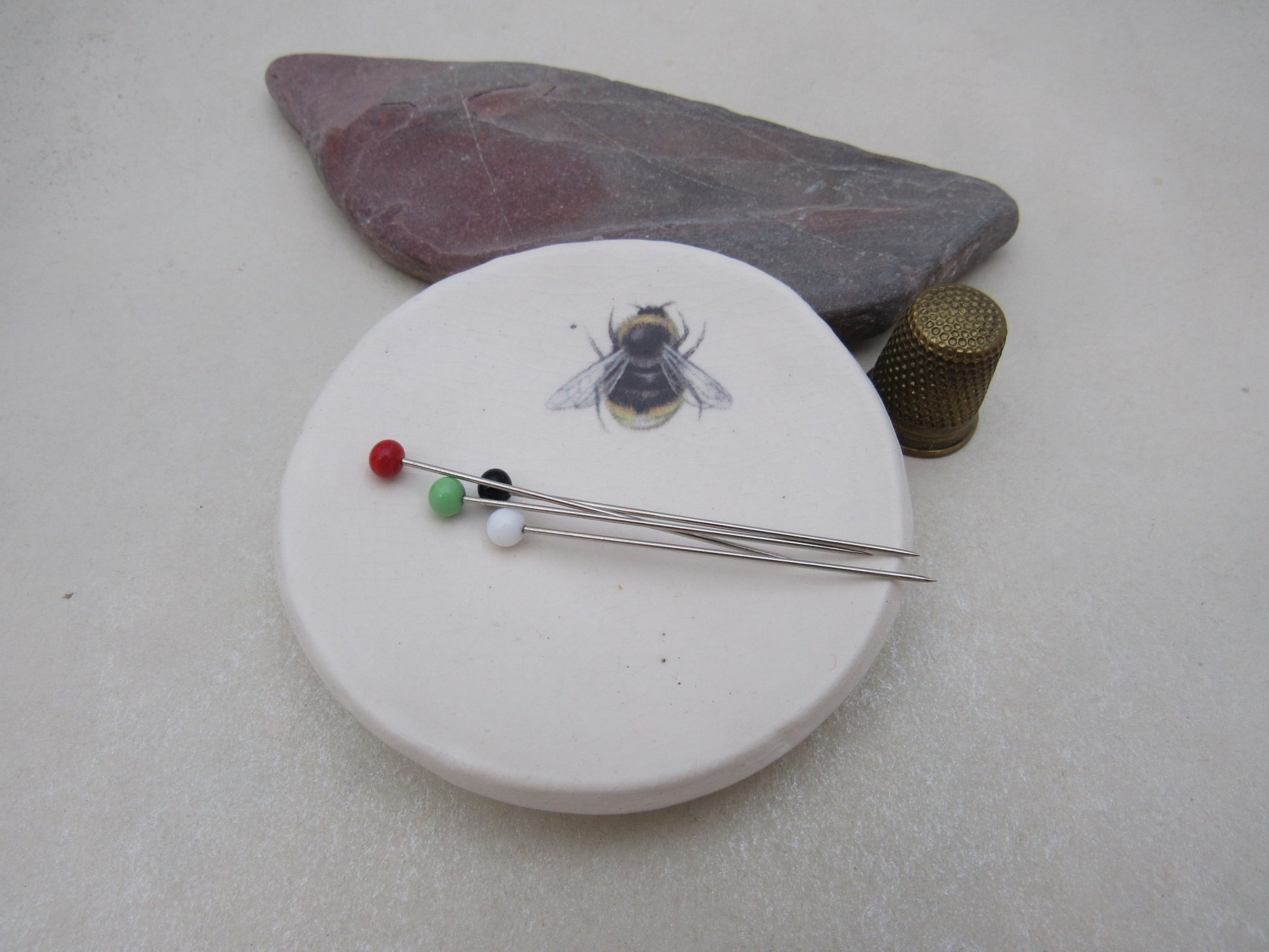 A handcut circle of white stoneware, moulded into a small bowl and finished with a glaze fired motif.