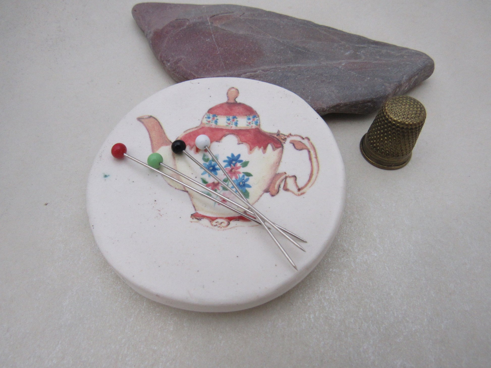 Measures approx 3" (7 cms) diameter, stands 0." (1 cms) high.