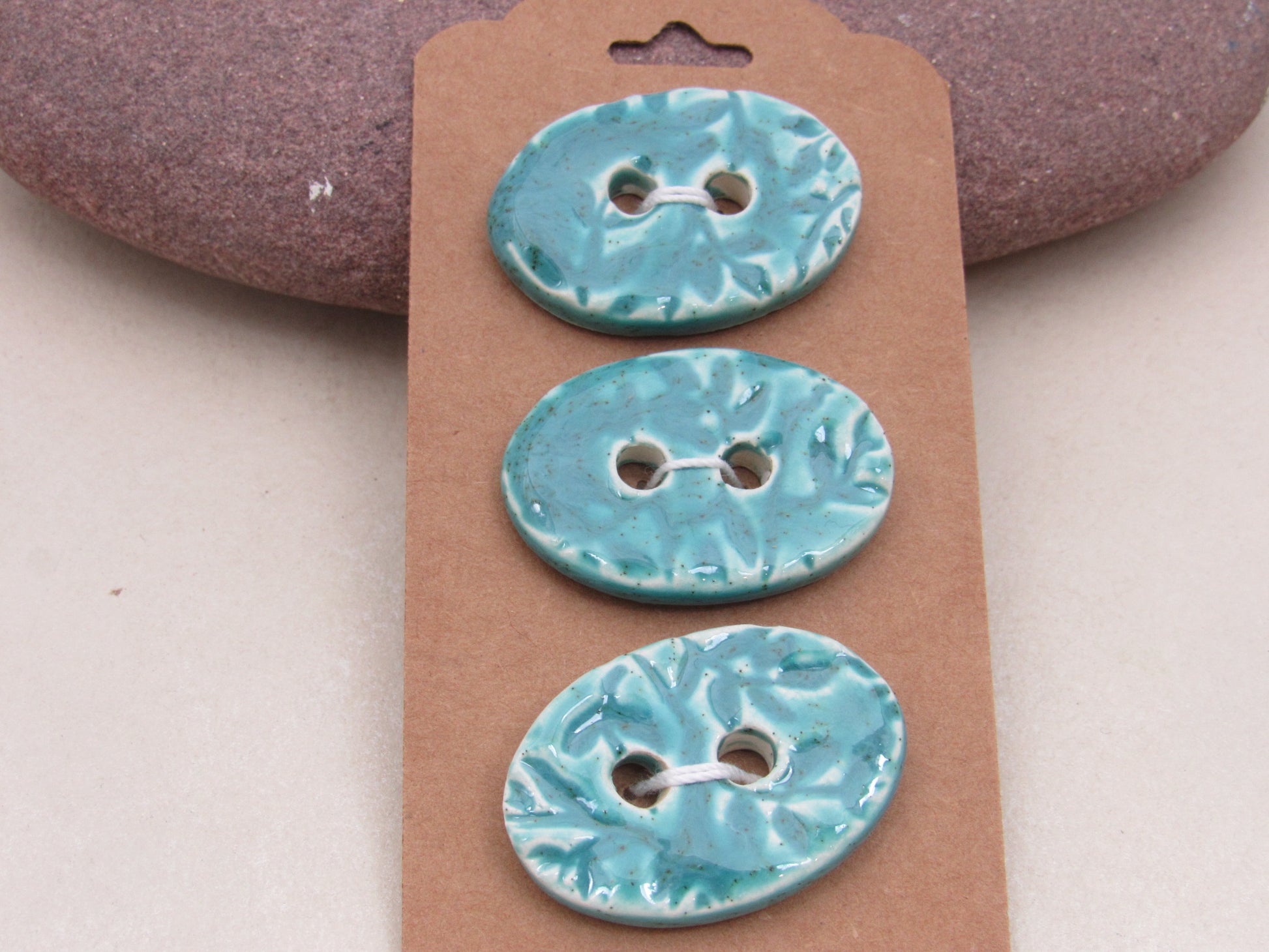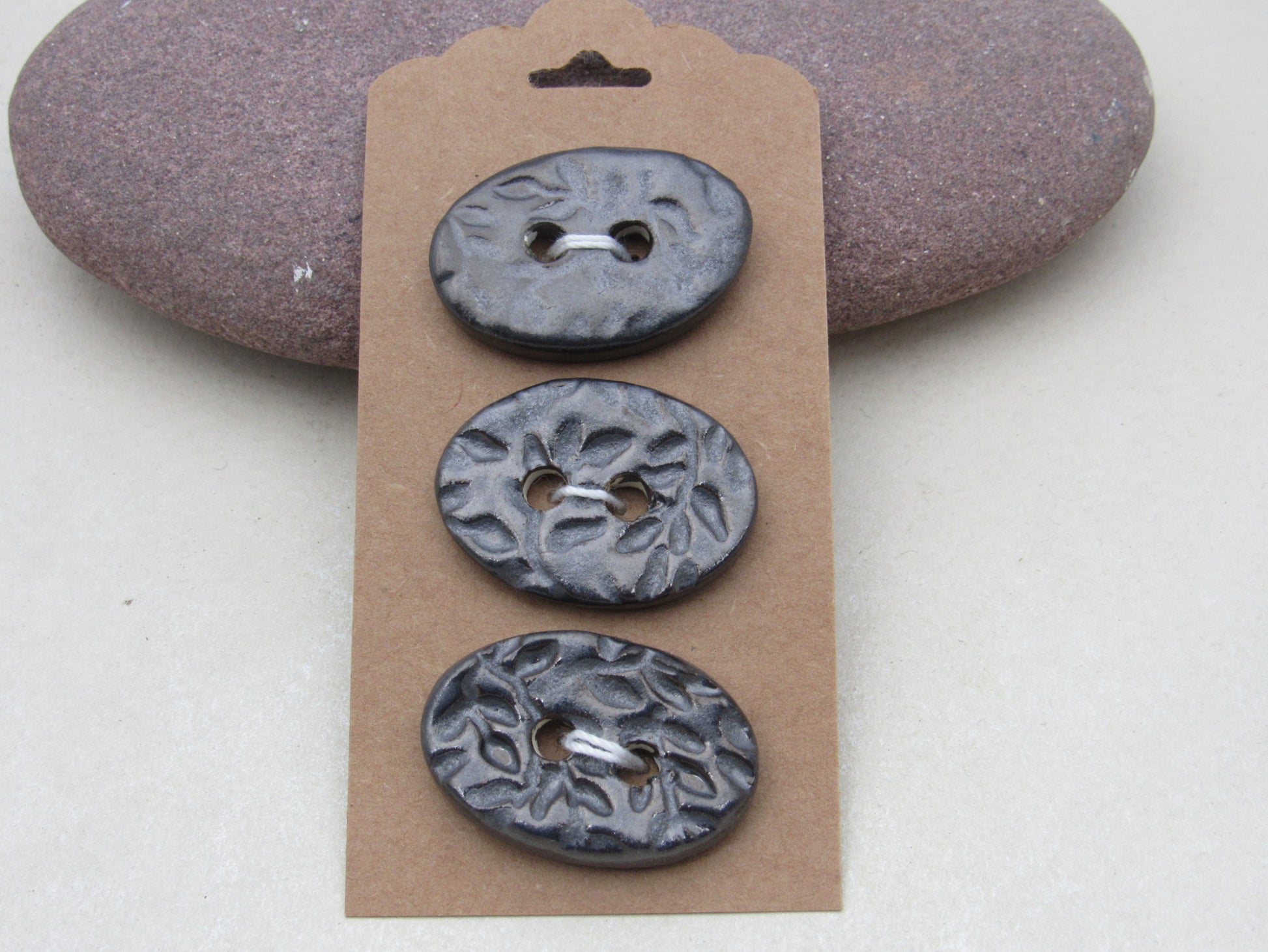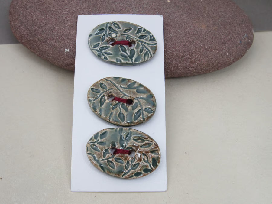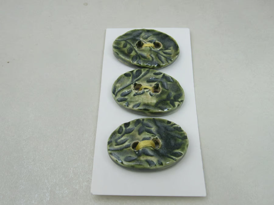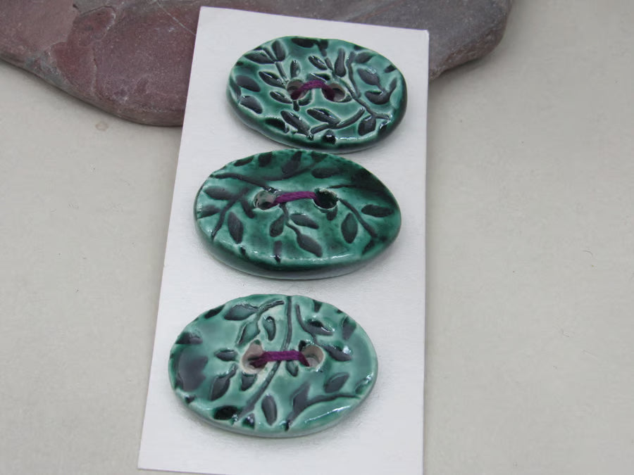 Trio of Medium Oval Sprig Pattern Ceramic Buttons