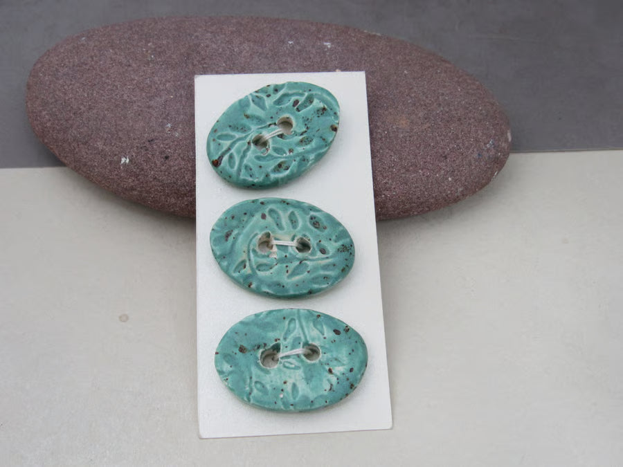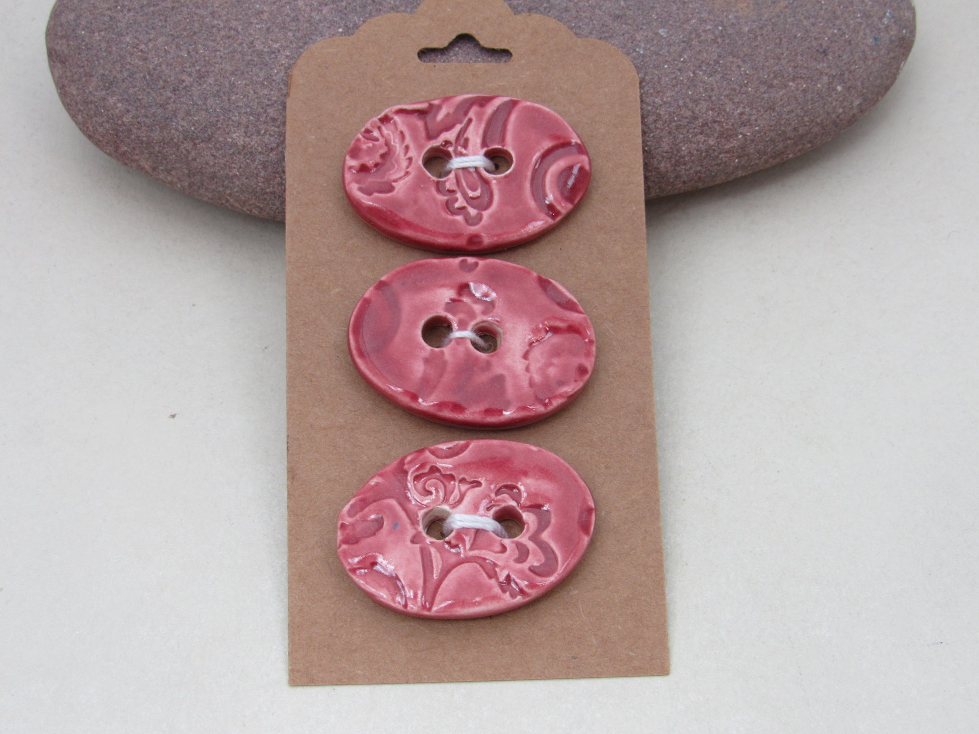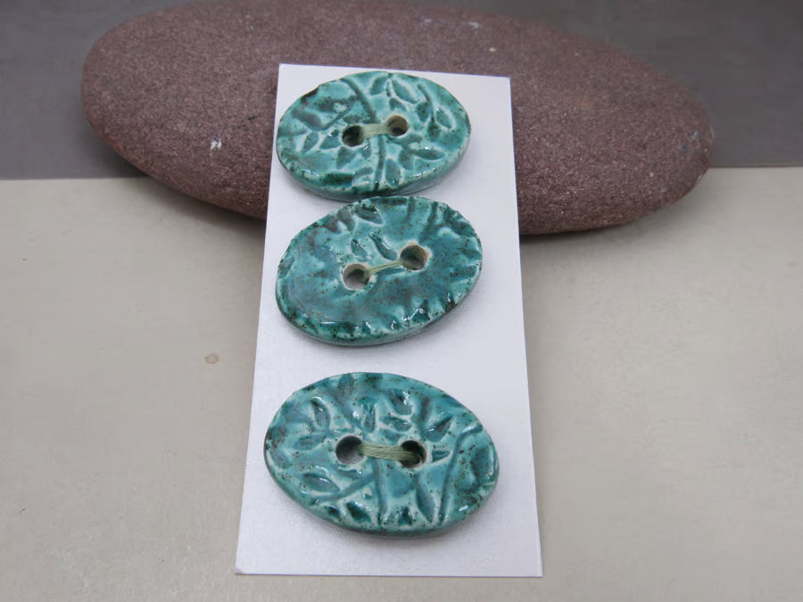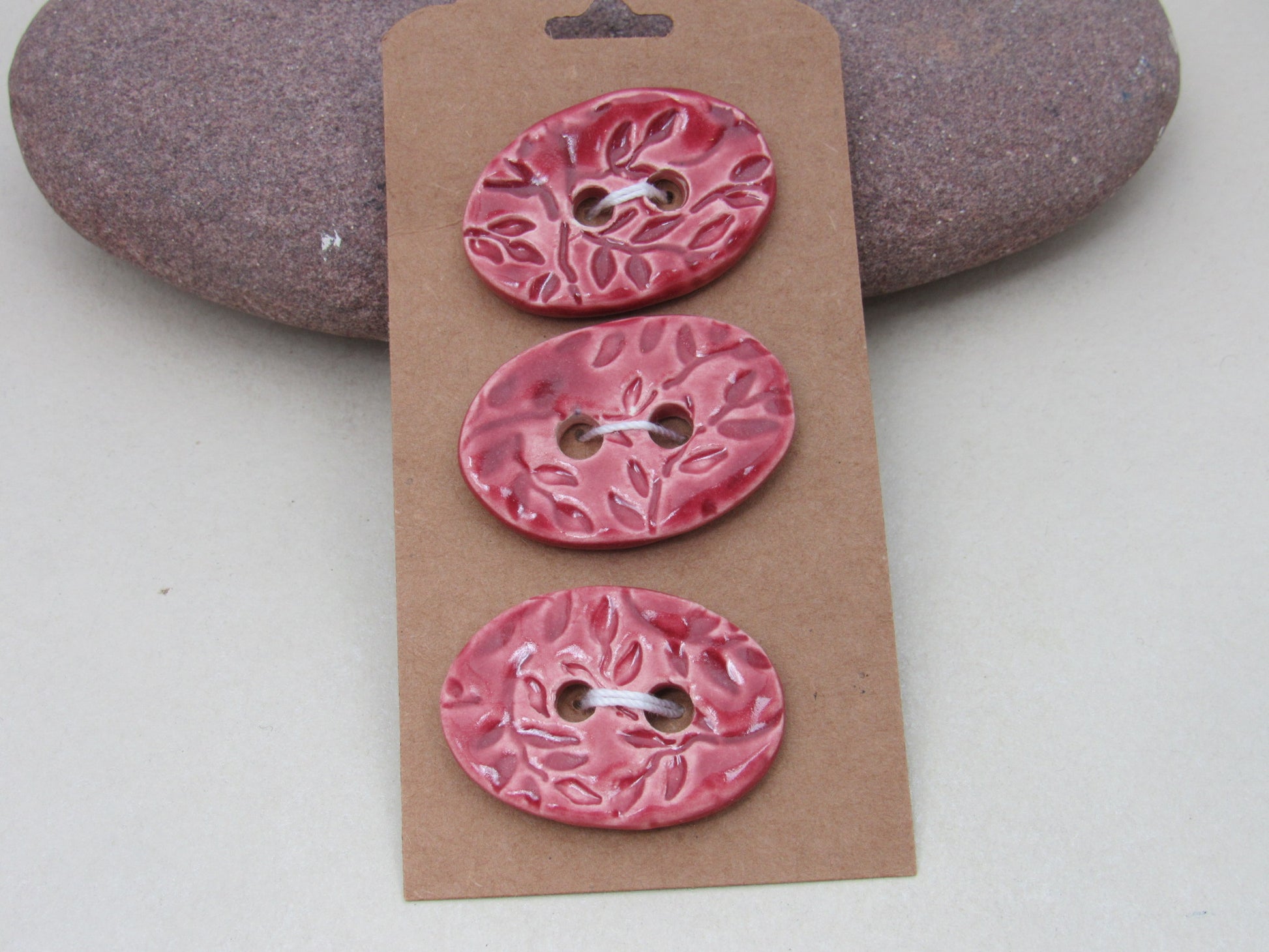 Trio of Medium Oval Sprig Pattern Ceramic Buttons